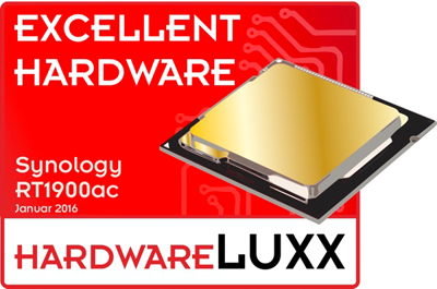 "Aufgrund der sehr guten Benutzeroberfläche und auch der ansonsten guten Leistung verleihen wir dem Synology RT1900ac den "Hardwareluxx Excellent Hardware"-Award." -