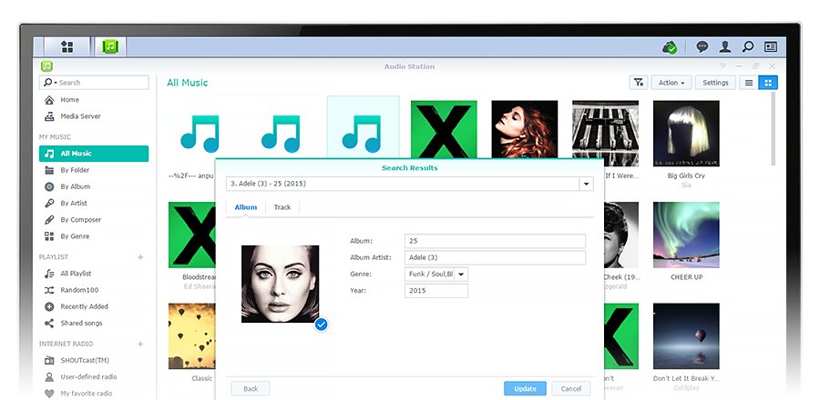 Audio Station le permite actualizar manualmente las etiquetas mp3 que le falten con solo unos clics. Con una completa información de las canciones, puede crear fácilmente una lista de reproducción inteligente y compartirla con otros.