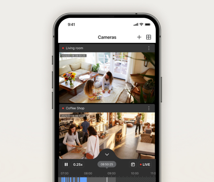 この監視体験は、大切な家族やペットを見守りたいご家庭や、継続的な料金なしでシンプルかつ信頼性の高い監視を求める小規模店舗・マイクロビジネスに最適です。ユーザーは最大8人までカメラアクセスを共有でき、ライブ映像の閲覧、通知の受信、イベントの確認が可能です。3